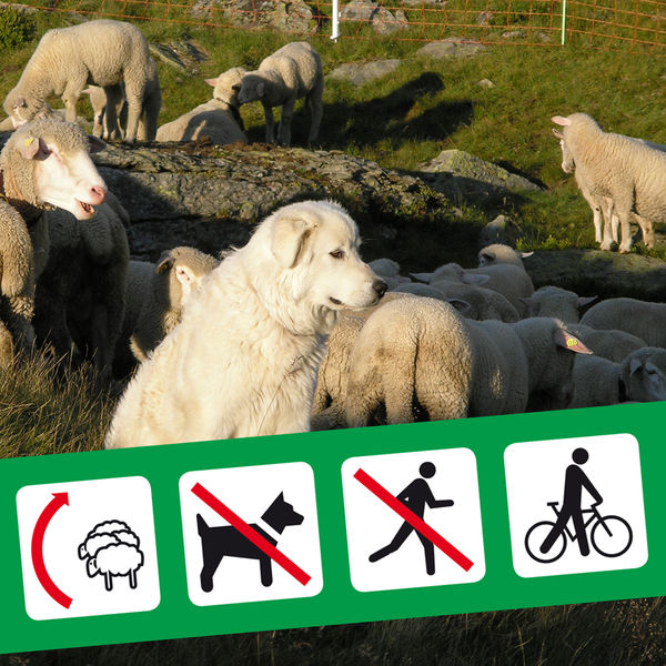 2016: Die Besucherlenktafeln zum Thema «Herdenschutzhunde» würden gemäss einer Untersuchung der Fachhochschule Wädenswil zu wenig beachtet und seien schlecht verständlich. Deshalb durfte ich neue Piktogramme entwickeln, die schneller und deutlicher auf richtiges Verhalten gegenüber Herdenschutzhunden hinweisen. Auch half ich mit, die gesamte Tafel zu optimieren.