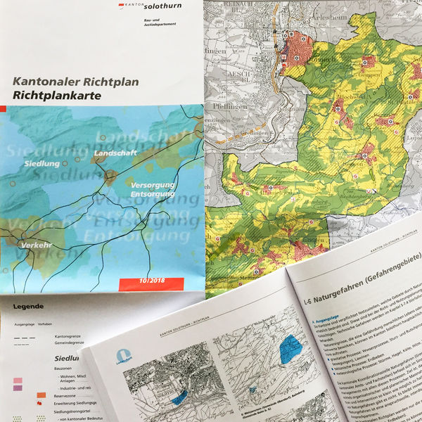 2018: Erneut durfte ich gestalterisch am Kantonalen Richtplan mitwirken. Schon im 2000 hatten wir ja an diesem wichtigen Instrument unserer Regierung und ihrer Verwaltung mitgearbeitet. Herausfordernd war insbesondere die fünffarbig gedruckte Karte, weil sich viele der auf der Karte dargestellten Richtplaninhalte überlagern und trotzdem separat erkennbar sein sollten. Das Layout des begleitenden Richtplantextes habe ich dem Corporate Design des Kantons angepasst. Beim Erstellen der zahlreichen Tabellen und dem Bearbeiten der vielen Karten beeindruckte mich die riesige Menge und Vielfalt von Projekten und Planungen, die mittels Richtplan koordiniert werden.